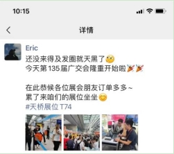這幾天的所見所聞,讓我更加堅信,無論面對何種挑戰,中國外貿人將以開放的姿態、創新的精神、優質的產品,通過廣交會這一橋梁,持續為全球消費者帶來驚喜,為世界經濟注入強勁動力。在展會上,我認識了無數的朋友,除了收獲滿滿的友誼,更有關于中國制造的新知,也更加堅定了我們所從事的事業。我相信,瑞諾國際的互聯網線上營銷組合拳,也會給世界帶來更多的貿易故事。