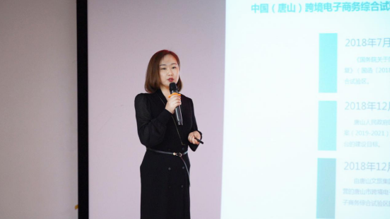 唐山市跨境電子商務綜合服務平臺的副總經理孟晶晶女士在做講解。
