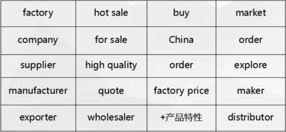 擴(kuò)展關(guān)鍵詞,加衍生詞,如supplier,manufacture,wholesale,exporter等;