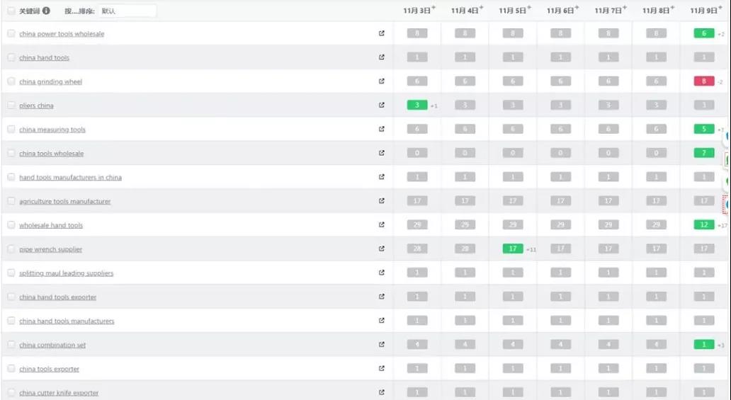 就好比我們所做的一個(gè)手動(dòng)工具及五金網(wǎng)站,經(jīng)常由于關(guān)鍵詞在首頁(yè)的原因,收獲更多詢盤(pán):《3個(gè)月95封詢盤(pán),101個(gè)精準(zhǔn)關(guān)鍵詞上首頁(yè)》