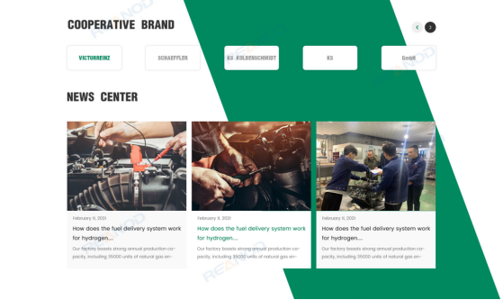 結合企業深耕再制造發動機領域的環保使命,設計師以“可持續發展”為設計內核,選用企業的品牌標準色“綠色”,匠心打造以森系墨綠為主色調的品牌官網。整體視覺體系萃取“發動機金屬質感”與“自然生態元素” 進行創新融合。