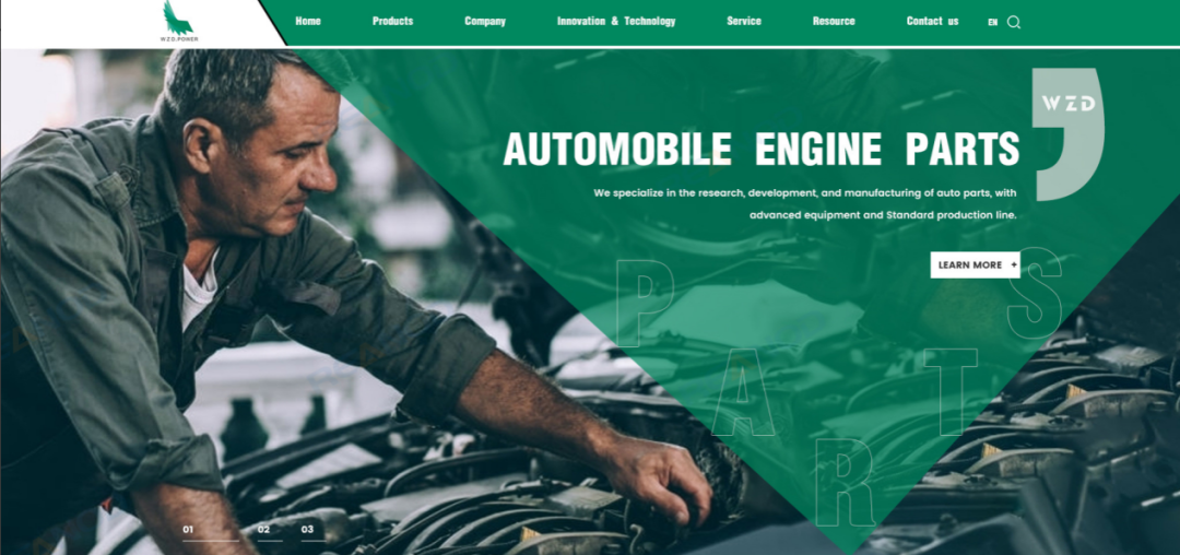 初次點開廣州萬震達動力科技有限公司的網站,撲面而來的視覺沖擊讓人恍若置身國際大片的開場鏡頭。象征環保動力的碧綠色塊呼嘯而來,這是吸睛的第一瞬間。而后視線聚焦,落到專注檢測發動機零部件的技術人員身上,卷起的衣袖和嚴謹的表情,完美詮釋了萬震達動力“精工制造”的品牌精神。Logo躍然于標題右上角,是極富有技巧的點綴。PARTS四個字母點明產品類型,既明確產品屬性,又成就視覺享受。
