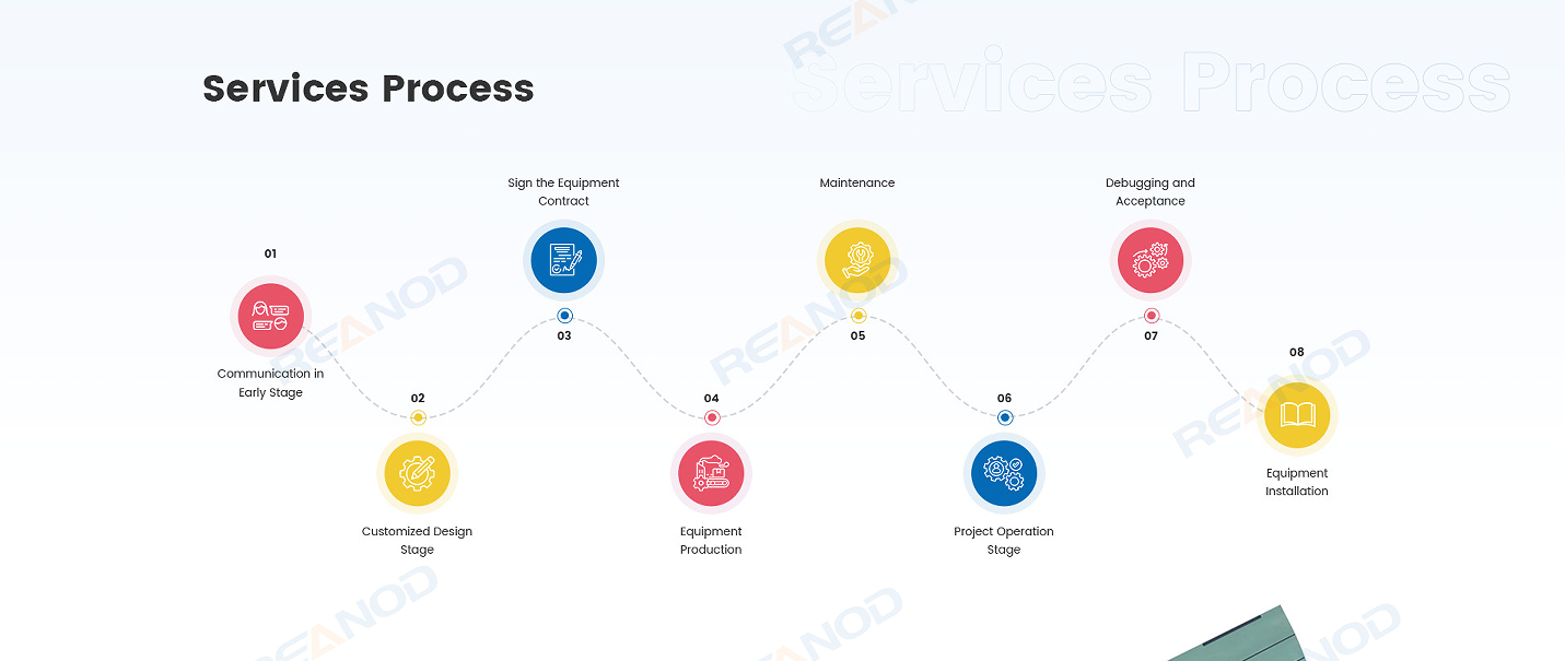 比如在這個“服務流程”模塊,8個服務流程采用8個可愛的彩色圓形展示,非常符合游樂設施的調性。