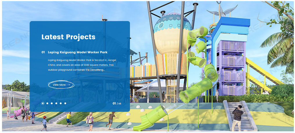 今天分享的案例,來自一個廣州的某大型游樂設施制造企業。游樂設施面向的群體是兒童,這也決定了網站需要塑造快樂活潑的氛圍,接下來我們針對主頁設計進行拆解,看看設計師如何用巧思調動情緒。