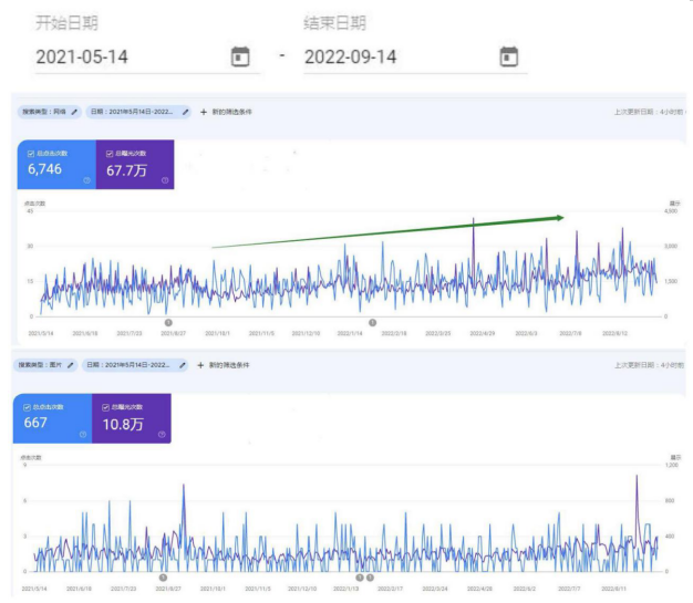 2021年5月—2022年9月網站曝光情況,呈穩定上升趨勢