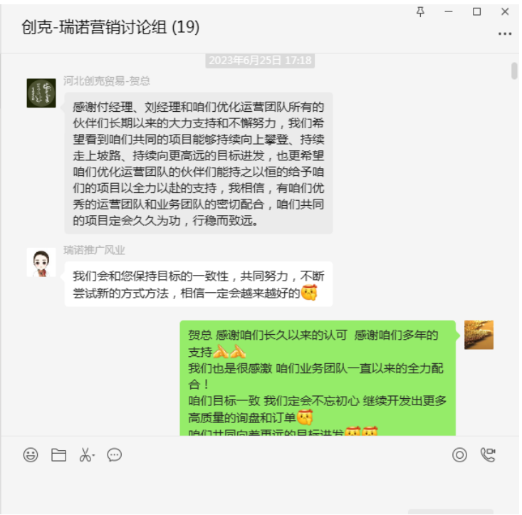 在賀總的眼中,瑞諾國際營銷顧問Fairy高度盡職盡責,真心為創克貿易考慮。