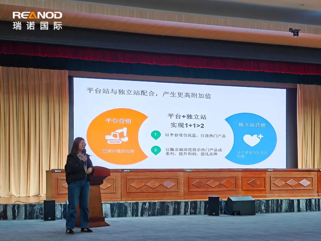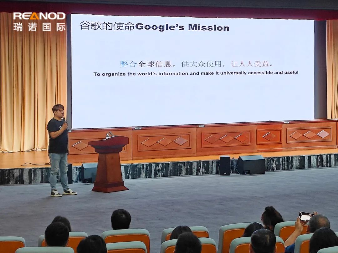隨后,瑞諾國際首席講師趙帥進行了“揚帆出海,獨立站助你遠航”的主題分享,為參會者提供了獨立站建設和運營的寶貴經驗。他首先講述了獨立站在提供卓越用戶體驗、便捷化管理操作和優化排名方面的優勢,從瑞諾國際服務過的項目案例出發,展示獨立站的構建過程,講解如何利用網站設計、內容創建、用戶體驗等吸引和留住客戶。趙帥老師還強調了引流對獨立站的重要性,通過案例數據分析,演示在SEO優化、內容營銷和社交媒體運營等多渠道協同的推廣策略下,提高網站的搜索引擎排名和在線可見度,提升網站的自然搜索流量和直接訪問量,增加詢盤數和轉化率。